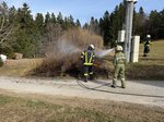 Noch während der Anfahrt erhielten wir die Rückmeldung, dass der Brand bereits gelöscht werden konnte. An der Einsatzstelle führten wir dennoch Nachlöscharbeiten durch und kontrollierten das betroffene Gebiet mittels Wärmebildkamera, um mögliche Glutnester auszuschließen.